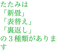 たたみの種類はたくさんございます。たたみ表、へり、床、大きさなどご要望に合わせてご提案させていただきます。